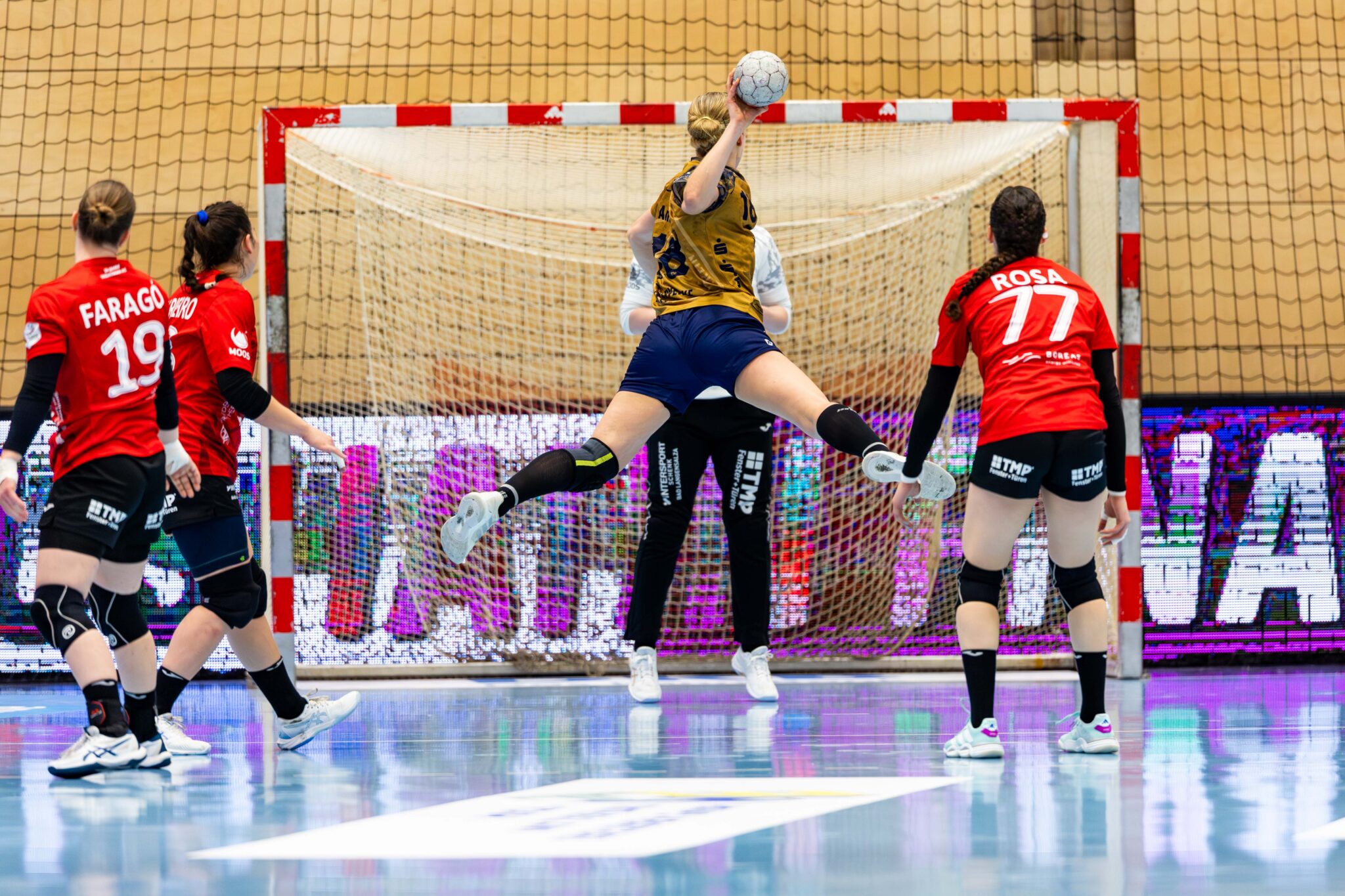 Die personelle Situation der Thüringerinnen blieb angespannt. Zwar kehrte Abwehrchefin Anika Niederwieser nach der Verletzungspause zurück, dafür mussten Johanna Reichert und Natsuki Aizawa pausieren. Dennoch übernahm der THC von Beginn an die Initiative und erspielte sich schnell eine Zwei-Tore-Führung. In der Anfangsphase überzeugten die Gastgeberinnen vor allem defensiv. Mit der zurückgekehrten Anika Niederwieser stabilisierte sich der Innenblock deutlich, die Räume wurden konsequent geschlossen und Torhüterin Laura Kuske konnte mehrere Würfe der Gäste entschärfen. In der Offensive hingegen schlichen sich Unkonzentriertheiten ein: technische Fehler, überhastete Abschlüsse und Aluminiumtreffer verhinderten eine deutlichere Führung. So lag der THC nach 15 Minuten lediglich mit 7:5 vorn. Buxtehude hielt mit viel Einsatz dagegen, profitierte phasenweise von Fehlern der Thüringerinnen und kam immer wieder heran. Die Gäste mussten dabei allerdings auch mehrere Zeitstrafen hinnehmen. In der Schlussphase der ersten Halbzeit setzte der THC auf die Variante Sieben-gegen-Sechs, was zwar offensive Akzente brachte, jedoch auch zwei Gegentreffer ins leere Tor zur Folge hatte. Mit einer knappen 13:12-Führung für den THC ging es in die Kabinen.