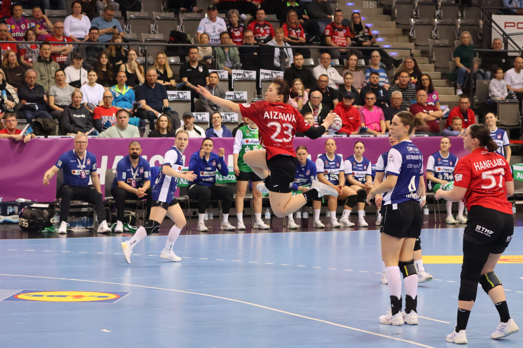 Nach dem Seitenwechsel erwischte Blomberg den besseren Start. Treffer von Alexia Hauf und Ona Vegue i Pena brachten die Ostwestfälinnen erstmals mit zwei Toren in Front, wenig später erhöhte Farrelle Alicia Njinkeu sogar auf drei Tore Vorsprung. THC-Trainer Müller reagierte mit einer Auszeit – mit Erfolg. In der 37. Minute stellte Nathalie Hendrikse den Ausgleich zum 17:17 her. Anschließend überzeugte der Thüringer HC vor allem defensiv. Über fünf Minuten ließ die Abwehr keinen Treffer zu, während Tore von Anna Szabo und Natsuki Aizawa einen 5:0-Lauf einleiteten. Nach 45 Minuten führte der THC mit 20:18. In der Schlussphase wechselte Müller viel durch und verteilte die Einsatzzeiten innerhalb des Kaders. Der Thüringer HC hielt zunächst einen Zwei-Tore-Vorsprung, bevor Blomberg in der 52. Minute durch Alexia Hauf den Ausgleich zum 24:24 erzielte. Kurz darauf kippte die Partie endgültig: Einen 5:0-Lauf brachte die HSG Blomberg-Lippe fünf Minuten vor dem Ende mit 27:24 in Führung. Trotz einer weiteren Auszeit gelang es dem Thüringer HC nicht mehr, das Spiel zu drehen. Zwar verkürzte der THC in der Schlussphase noch einmal. Am Ende setzte sich die HSG Blomberg-Lippe mit 29:27 durch und sicherte sich damit den dritten Platz beim Haushahn Final4. Der Thüringer HC musste sich nach einem engagierten Auftritt geschlagen geben.