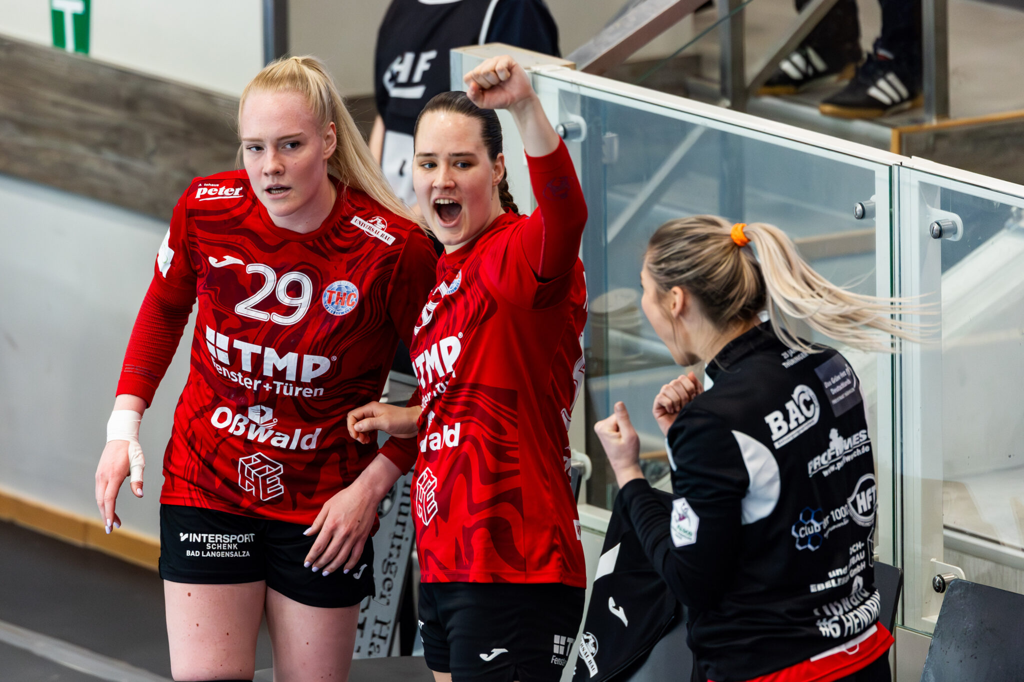 Die Gäste agierten von Beginn an mit einer offensiven 5:1 Abwehrformation, um THC-Torjägerin Johanna Reichert frühzeitig unter Druck zu setzen. Dennoch eröffnete sie die Partie mit dem ersten Treffer. Thüringen verteidigte kompakt und zwang Mosonmagyarovari immer wieder zu schwierigen Abschlüssen. Torhüterin Laura Kuske setzte mit mehreren frühen Paraden wichtige Impulse. Im Angriffsspiel fehlte den Gastgeberinnen zunächst die letzte Konsequenz, sodass sich kein klarer Vorsprung entwickelte (5:4/10.). Mit zunehmender Spieldauer gewann der THC jedoch an Stabilität. Nach rund 15 Minuten war der Rückstand aus dem Hinspiel egalisiert, wenig später sorgte Anna Szabo erstmals für eine Drei-Tore-Führung. Ein nicht anerkanntes Eigentor der ungarischen Torhüterin Barbara Arenhart führte zu Diskussionen auf den Rängen, verlieh der Partie jedoch zusätzliche Energie. Thüringen nutzte die Dynamik, erhöhte zwischenzeitlich auf 12:8 (20.) und nahm eine 15:12-Führung mit in die Pause. Trainer Herbert Müller setzte in der Schlussphase der ersten Hälfte erfolgreich auf taktische Varianten wie das Sieben-gegen-Sechs sowie flexible Rückraumkonstellationen.