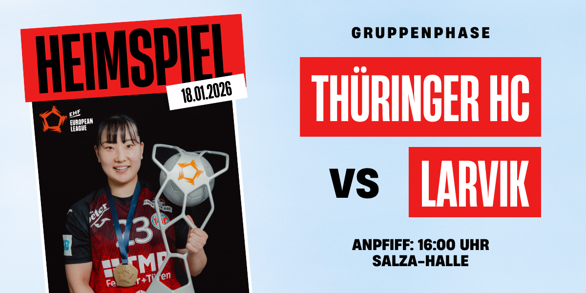 Am Sonntag, den 18. Januar, um 14:00 Uhr empfängt der Thüringer HC in der Salza-Halle den Tabellenführer der norwegischen Liga, Larvik HK, in der Gruppenphase der EHF European League. Beide Teams haben zum Auftakt verloren und stehen so schon unter Druck, wenn sie das Viertelfinale erreichen wollen. Larvik ist der Gruppenfavorit, da muss der THC schon über sich hinauswachsen, wenn er punkten will.